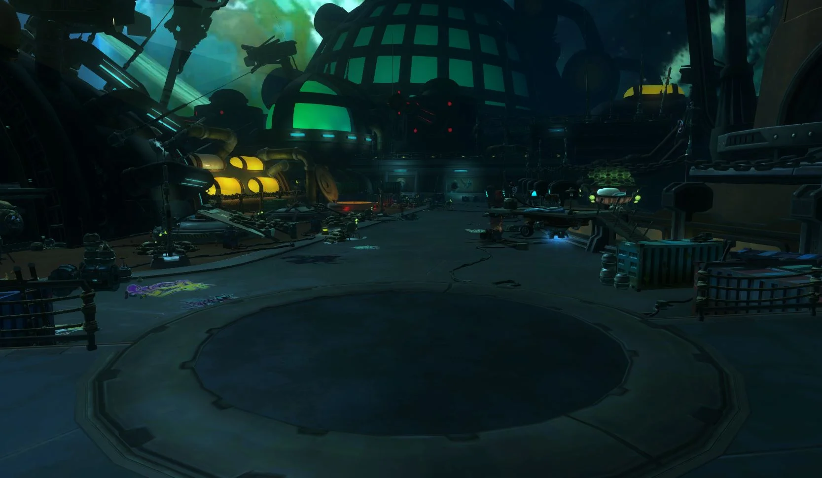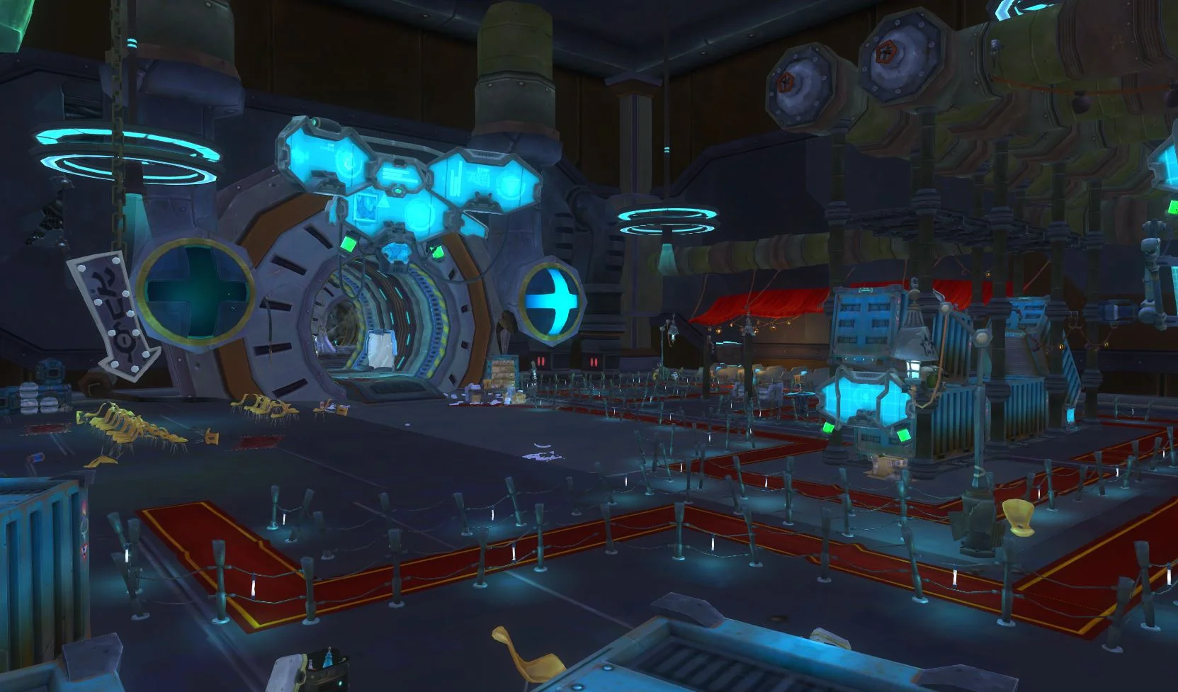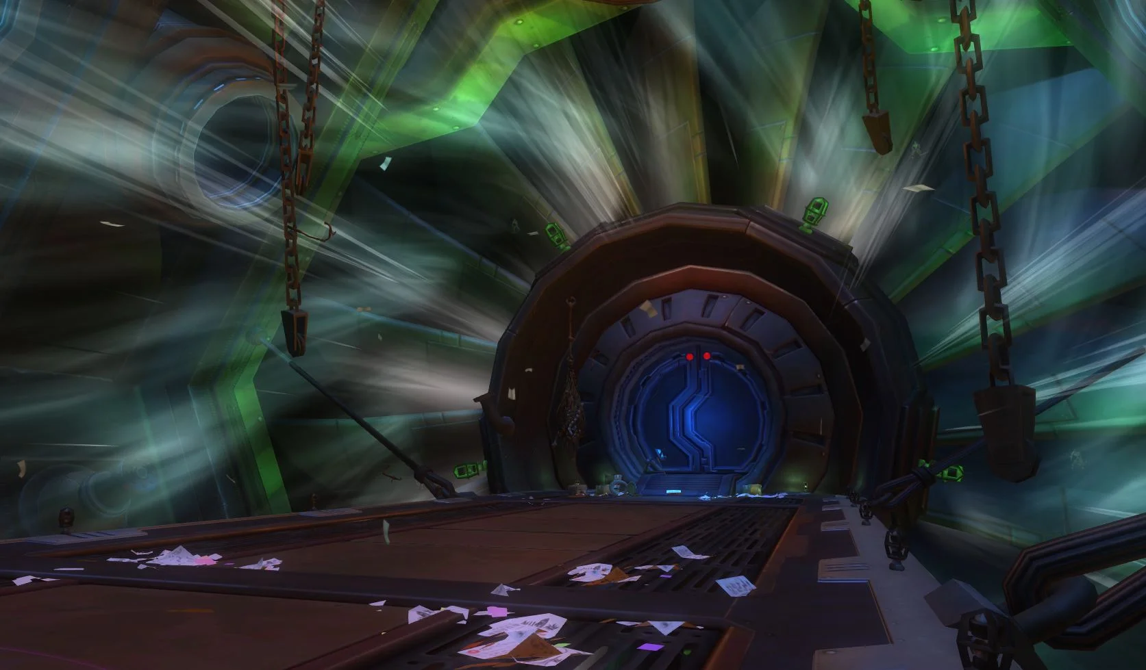Red Moon Terror or RMT was the massive Raid being created during my time at Carbine. It had been in development for a couple years and I was determined to help the Artist working on RMT, Dan Eibling get it completed. I worked with Dan, and the Dungeon Design Lead to keep RMT on schedule. We were able to get RMT to a state where we were able to finally put it up on the PTR servers. It consisted of over 20 rooms and a couple "themed" rooms containing fights with regular mobs and bosses. Working with Dan and the Dungeon Design Lead we made sure each room was set dressed to compliment the story of the Raid. Dan and I planned out each rooms set dressing to show the growing invasion of zombies. I also stepped in to help Dan set dress a couple of the rooms so that it would stay on scheduled. Communicating with Design as much as possible to make sure there was no surprised for the team. Working with other departments to solve any issues that popped up and coordinating with the Props and FX Leads for things we needed in RMT. Unfortunately RMT was not able to get a final lighting pass.