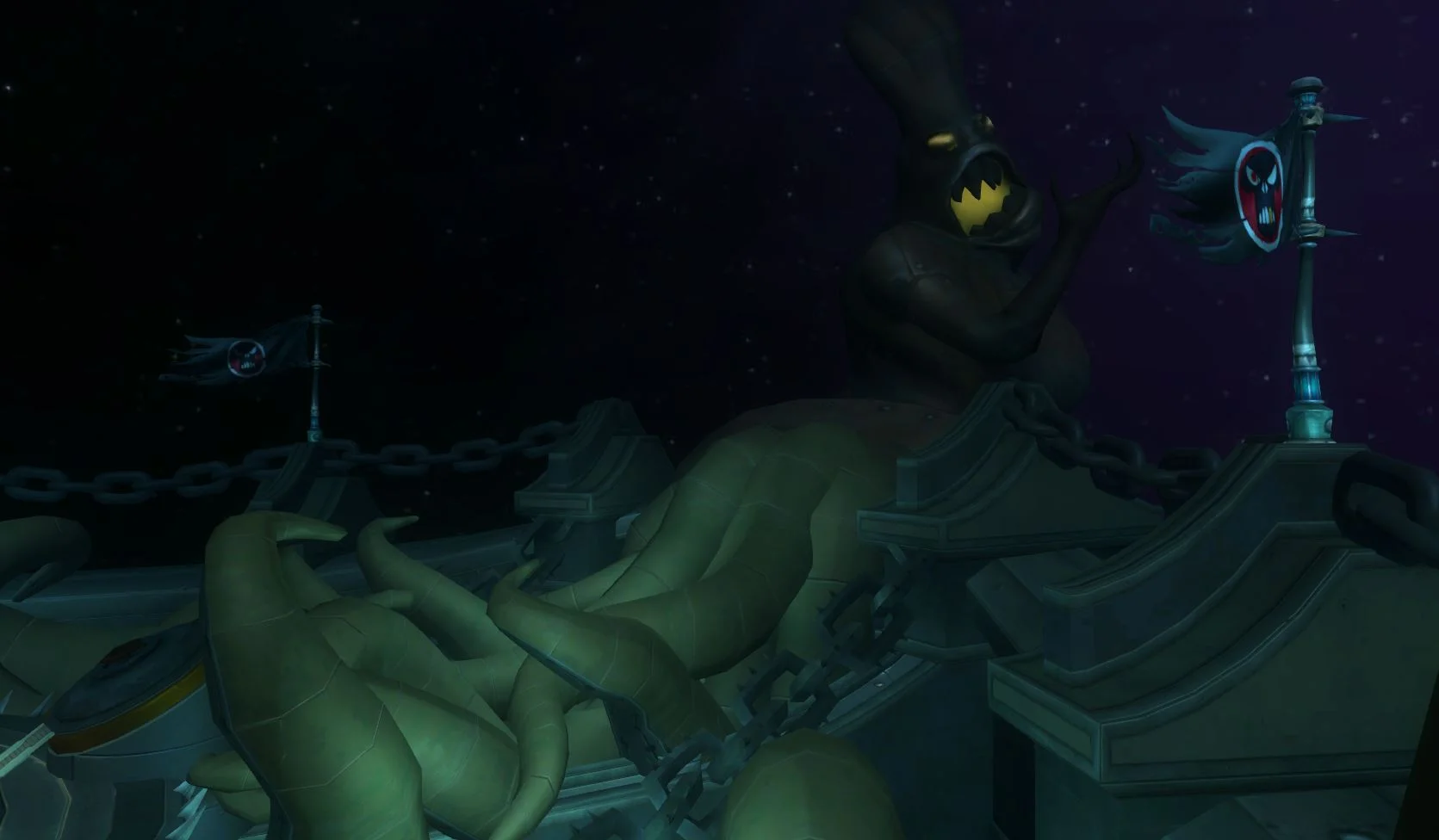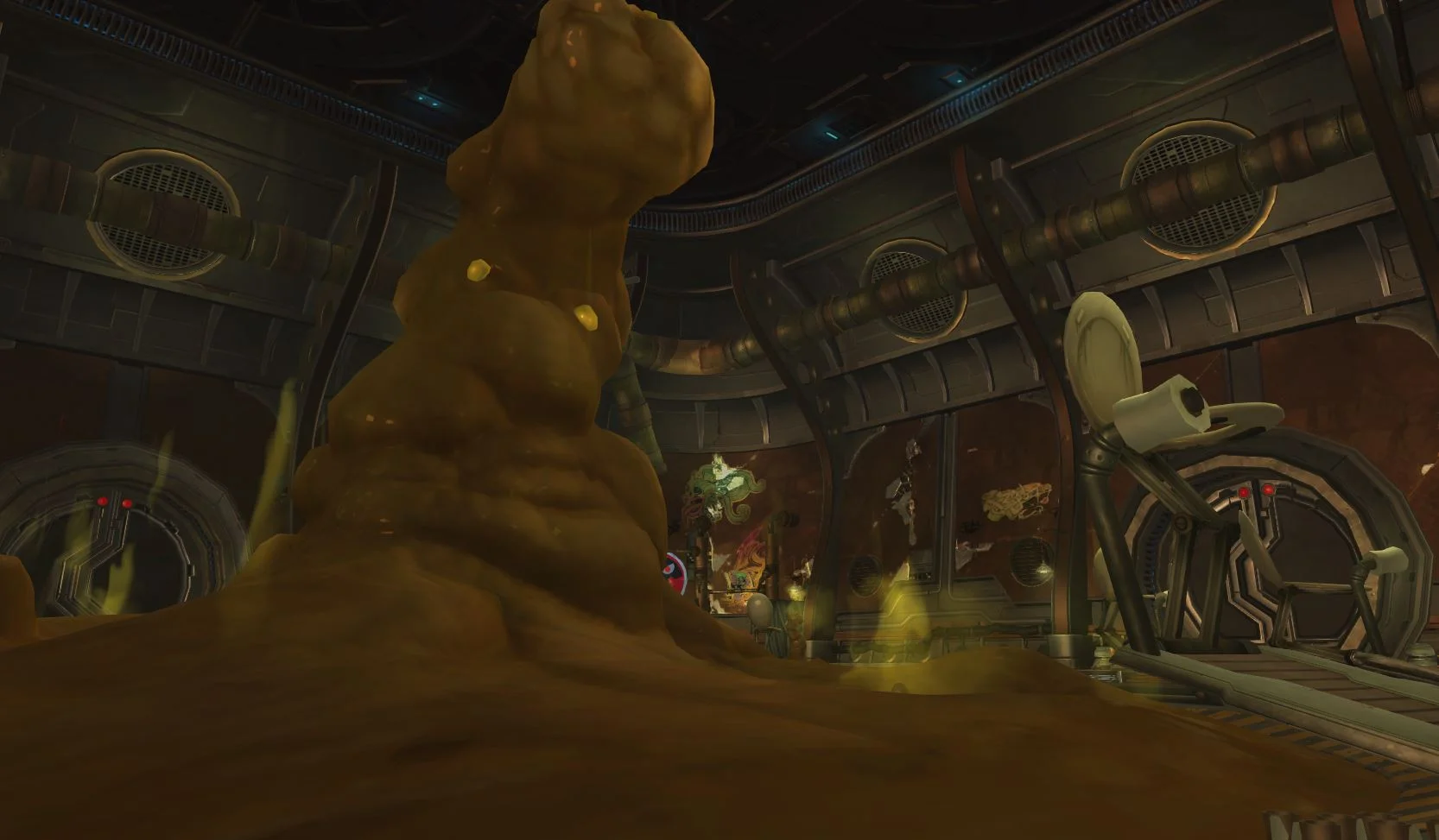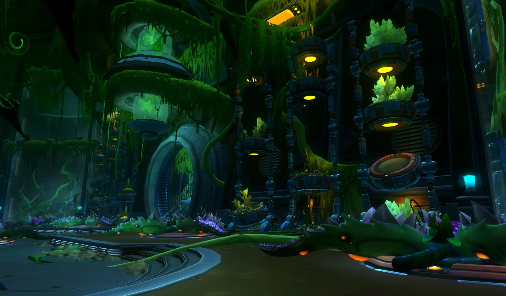 Red Moon Terror or RMT was the massive Raid being created during my time at Carbine. It had been in development for a couple years and I was determined to help the Artist working on RMT, Dan Eibling get it completed. I worked with Dan, and the Dungeon Design Lead to keep RMT on schedule. We were able to get RMT to a state where we were able to finally put it up on the PTR servers. It consisted of over 20 rooms and a couple "themed" rooms containing fights with regular mobs and bosses. Working with Dan and the Dungeon Design Lead we made sure each room was set dressed to compliment the story of the Raid. Dan and I planned out each rooms set dressing to show the growing invasion of zombies. I also stepped in to help Dan set dress a couple of the rooms so that it would stay on scheduled. Communicating with Design as much as possible to make sure there was no surprised for the team. Working with other departments to solve any issues that popped up and coordinating with the Props and FX Leads for things we needed in RMT. Unfortunately RMT was not able to get a final lighting pass.