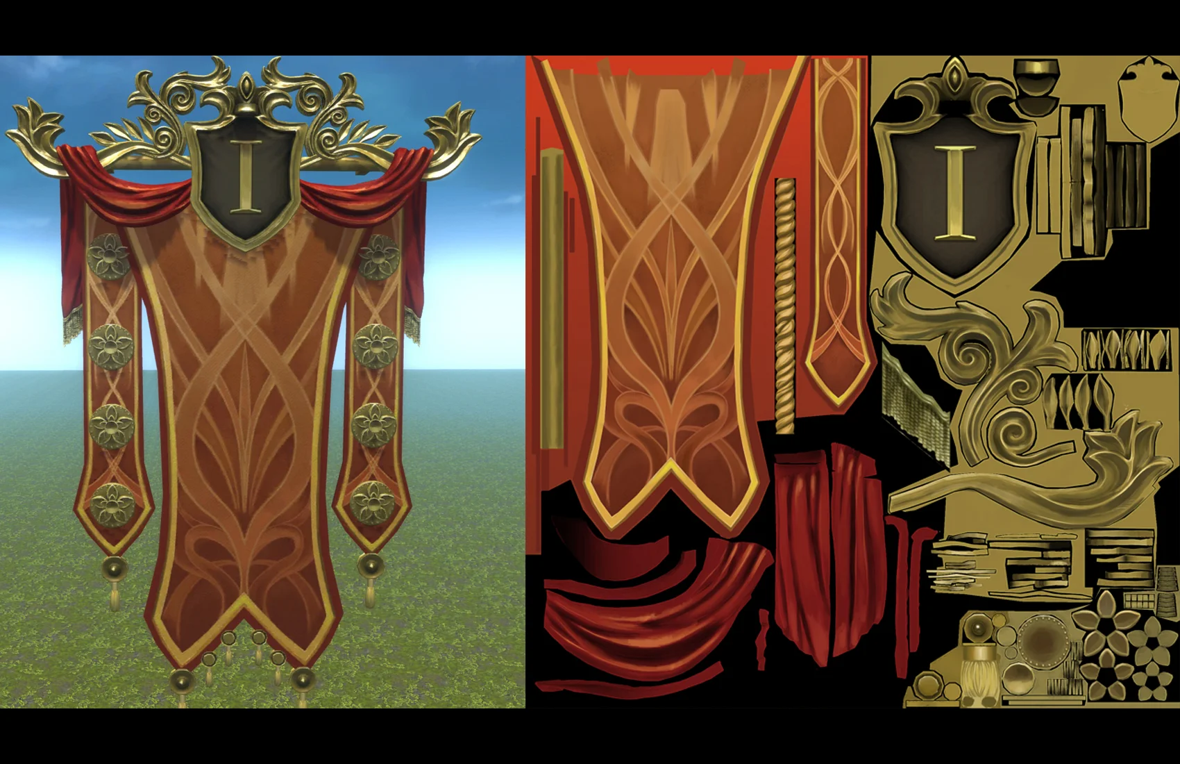 Here's a shot of the Anniversary Banner I created. Sculpt was done in Zbrush and most of the textures were done in DDO. The main banner was hand painted.